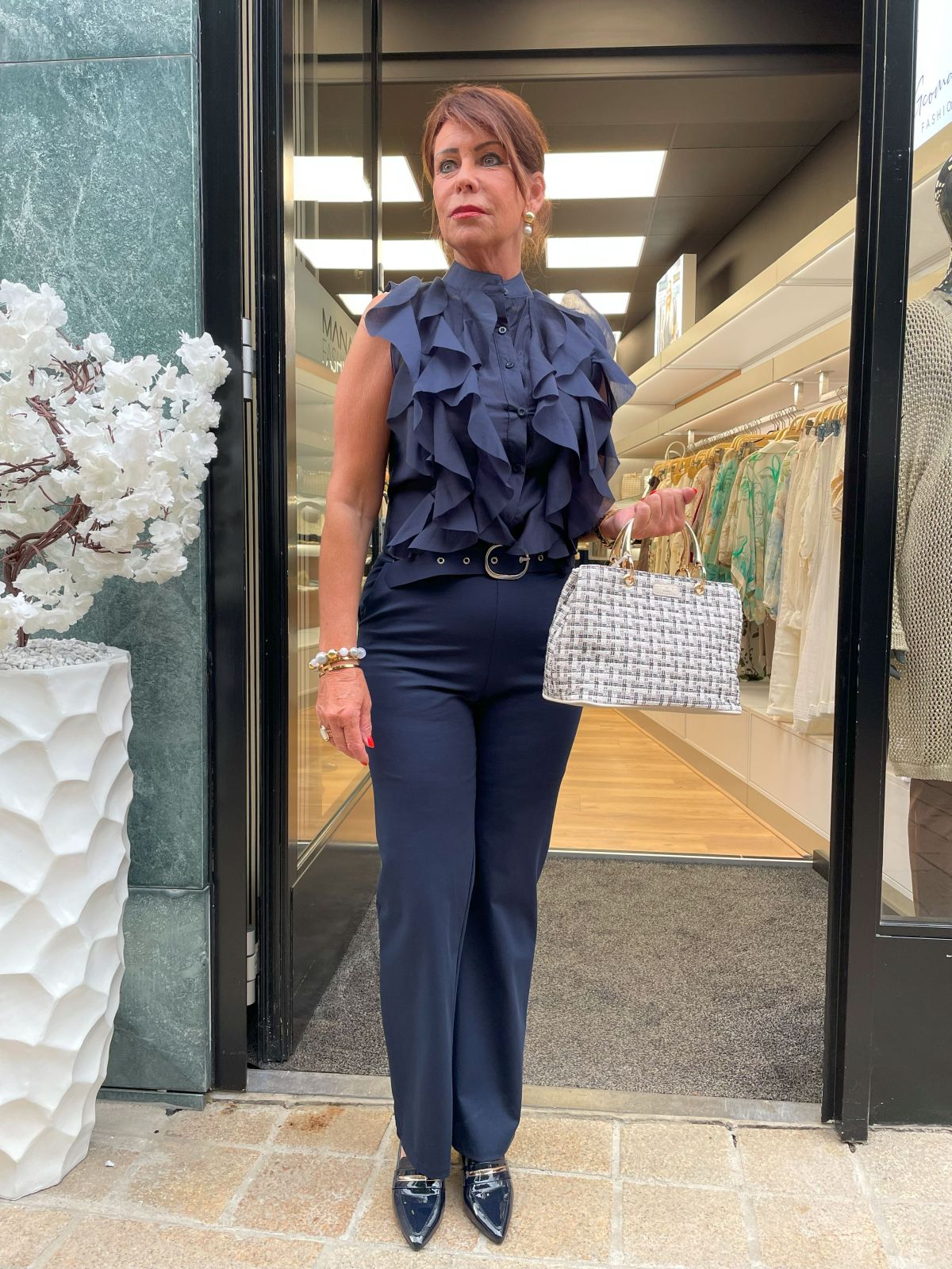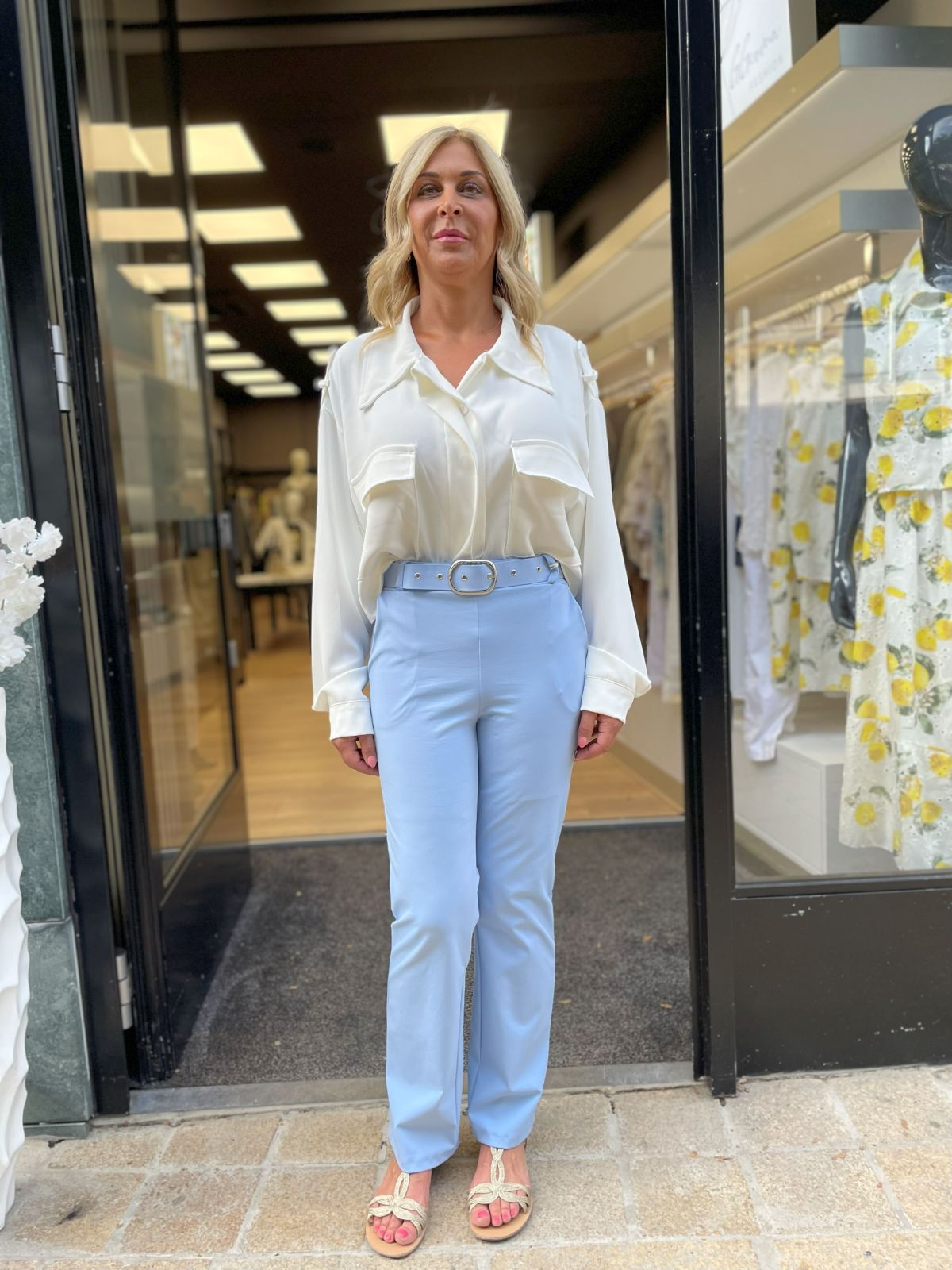 Travel pantalon Lola is een stijlvolle en veelzijdige damesbroek die comfort en elegantie moeiteloos combineert. De kreukvrije travelstof met elastaan en spandex voelt zacht aan, beweegt soepel met je mee en behoudt altijd haar vorm — ideaal voor onderweg, op kantoor of gewoon in je vrije tijd.