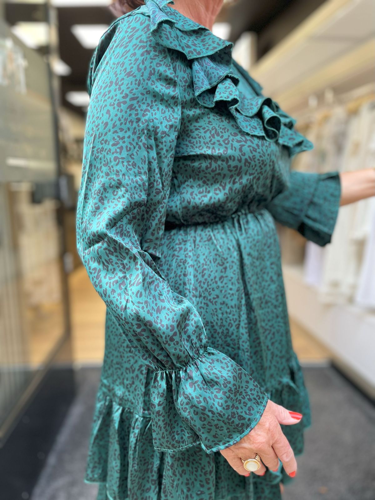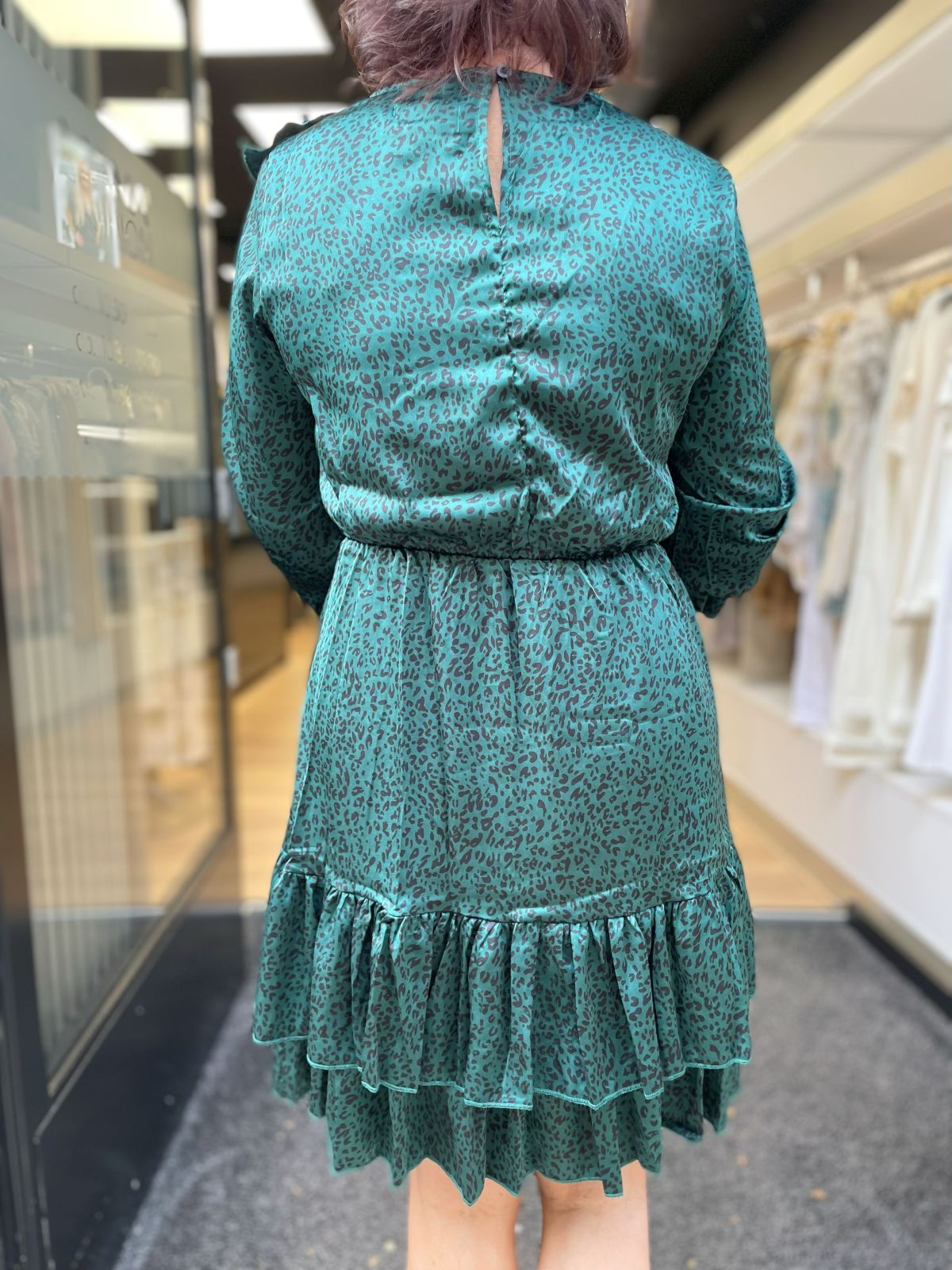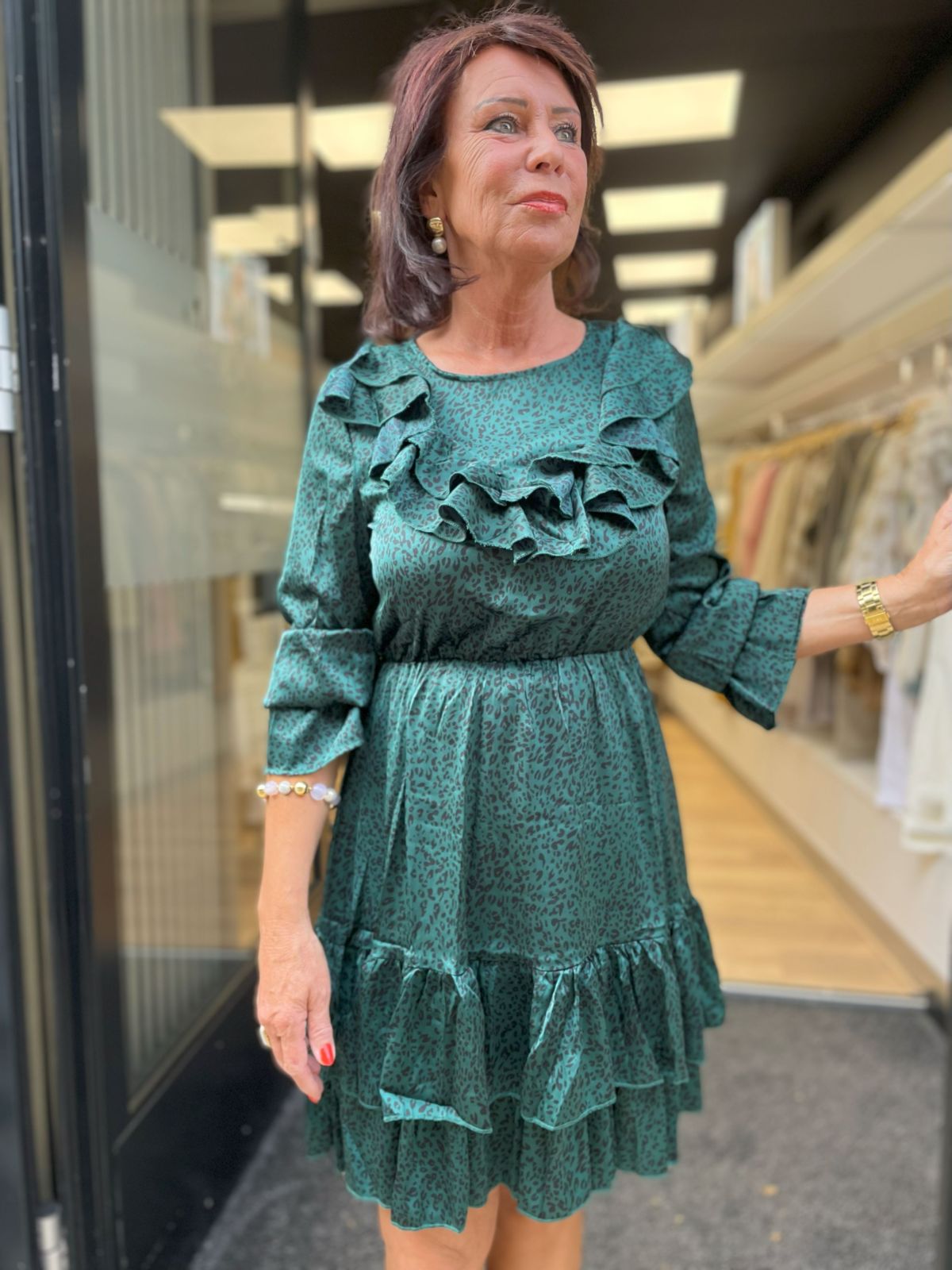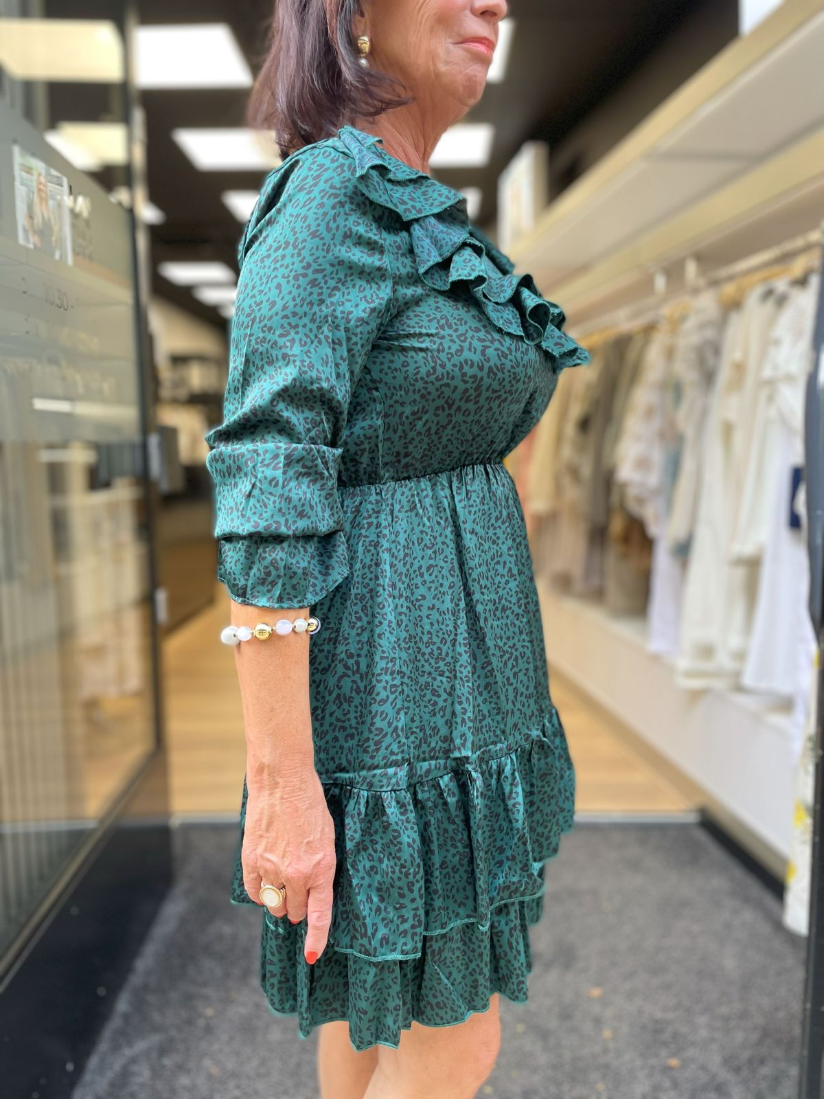 Jurk Tara is de perfecte combinatie van vrouwelijk, stijlvol en een tikje gedurfd. Deze jurk is gemaakt van soepelvallend polyester en voorzien van een verfijnde dierenprint in luipaardmotief die nét genoeg opvalt zonder te overheersen.