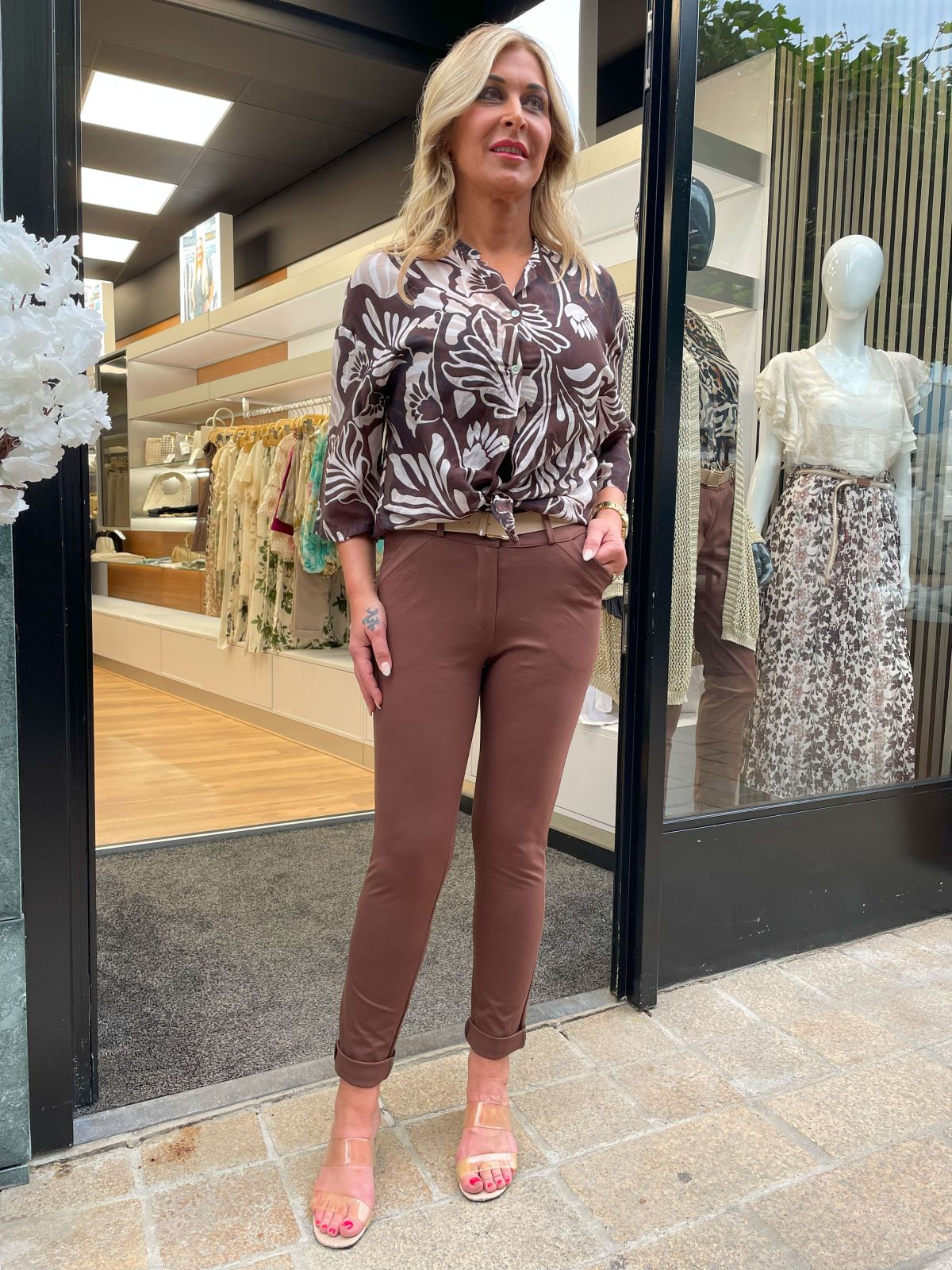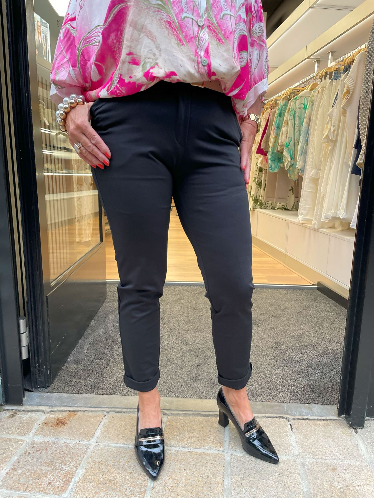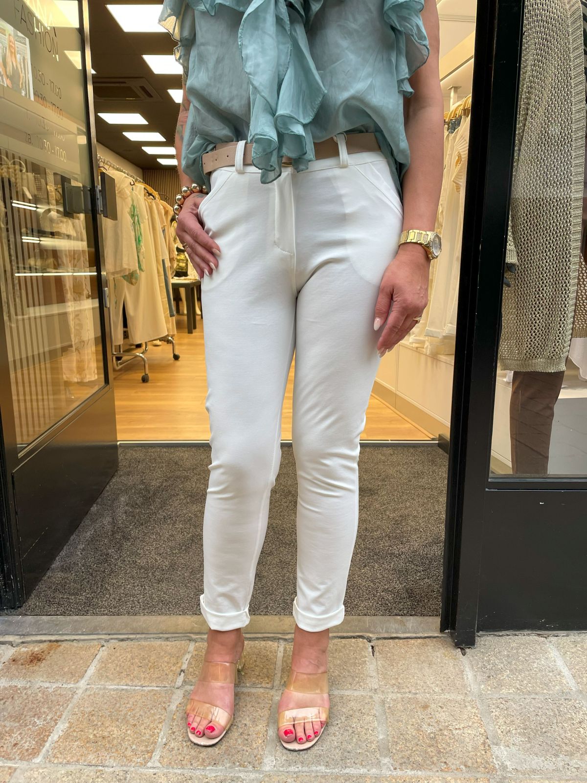 De Pantalon Alyna valt recht op de bovenbeen, met een omslag onder. Let op, kan een of twee maten kleiner uitvallen!!