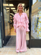 Broek Laura is een stijlvolle lange damesbroek met een vrouwelijke snit en een comfortabele pasvorm. De soepel vallende, wijde pijpen zorgen voor een elegante uitstraling en bewegen moeiteloos met je mee of je nu casual gekleed gaat of nét iets chiquer.